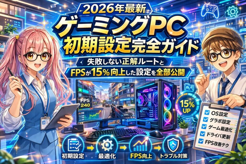 この記事を読めば、開封→Windows初期設定→BIOS→ドライバ→GPU最適化→ゲーム内設定まで、ステップバイステップで失敗ゼロの正解ルートがわかる。BTOゲーミングPCを量販店で買った人も、自作PCの人も同じ手順が使える。