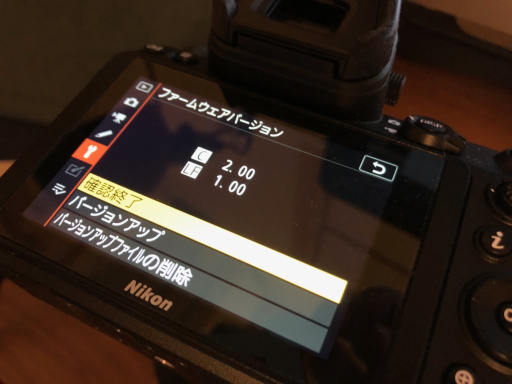 「MENUボタン」→「セットアップメニュー」→「ファームウェアバージョン」→「バージョンアップ」の順で進むとアップデートが始まります。